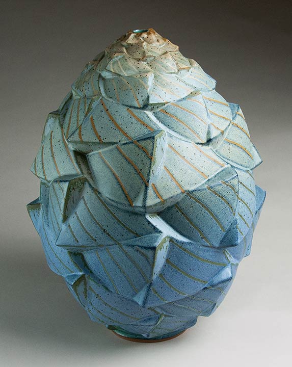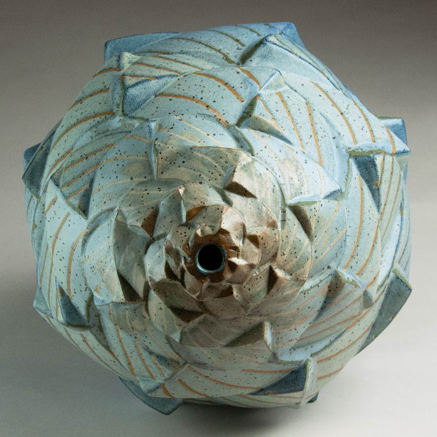 Bulwark - Faceted texture in blue, green, and orange ceramic pot