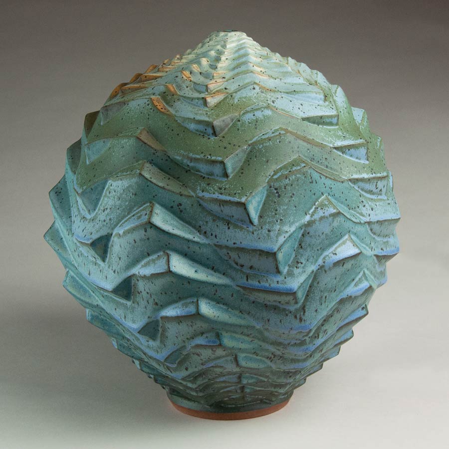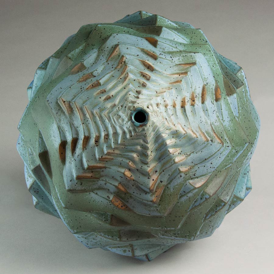 This is a similar design to Silent Cliffs, but the segments are more numerous and closer together. I also curved the vertical lines more, so the result is very different. I’m posting three shots of this one. If you look closely at the two vertical shots, one is taken at a slightly higher angle, and it changes the shape and the look of the piece significantly. The shot from above is striking.