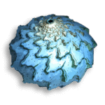 Integrating birds into the metaphysical motif adds the notion of flight. After the glaze fire, using gold luster, I hand painted birds flying out of the inside and approaching the ocean at the bottom of the piece. When you paint with gold luster, you’re applying a gooey dark brown liquid that’s not easy to handle. When fired to a low cone 017 or 018 temperature, this unattractive and odoriferous substance magically turns to gold! This piece also has a black river rock at its top.