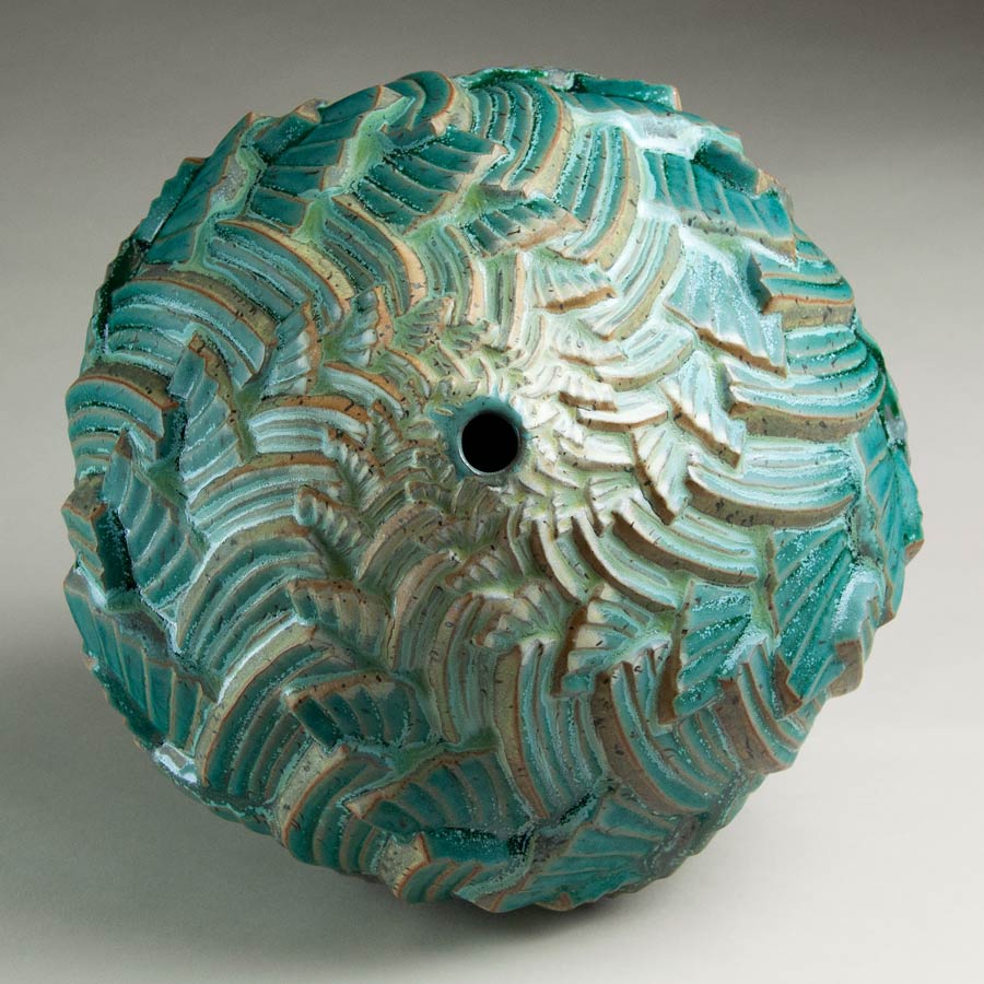 This piece is further complicated by the lines, or striations carved on the surface of the three-dimensional structure. It looks very organic.